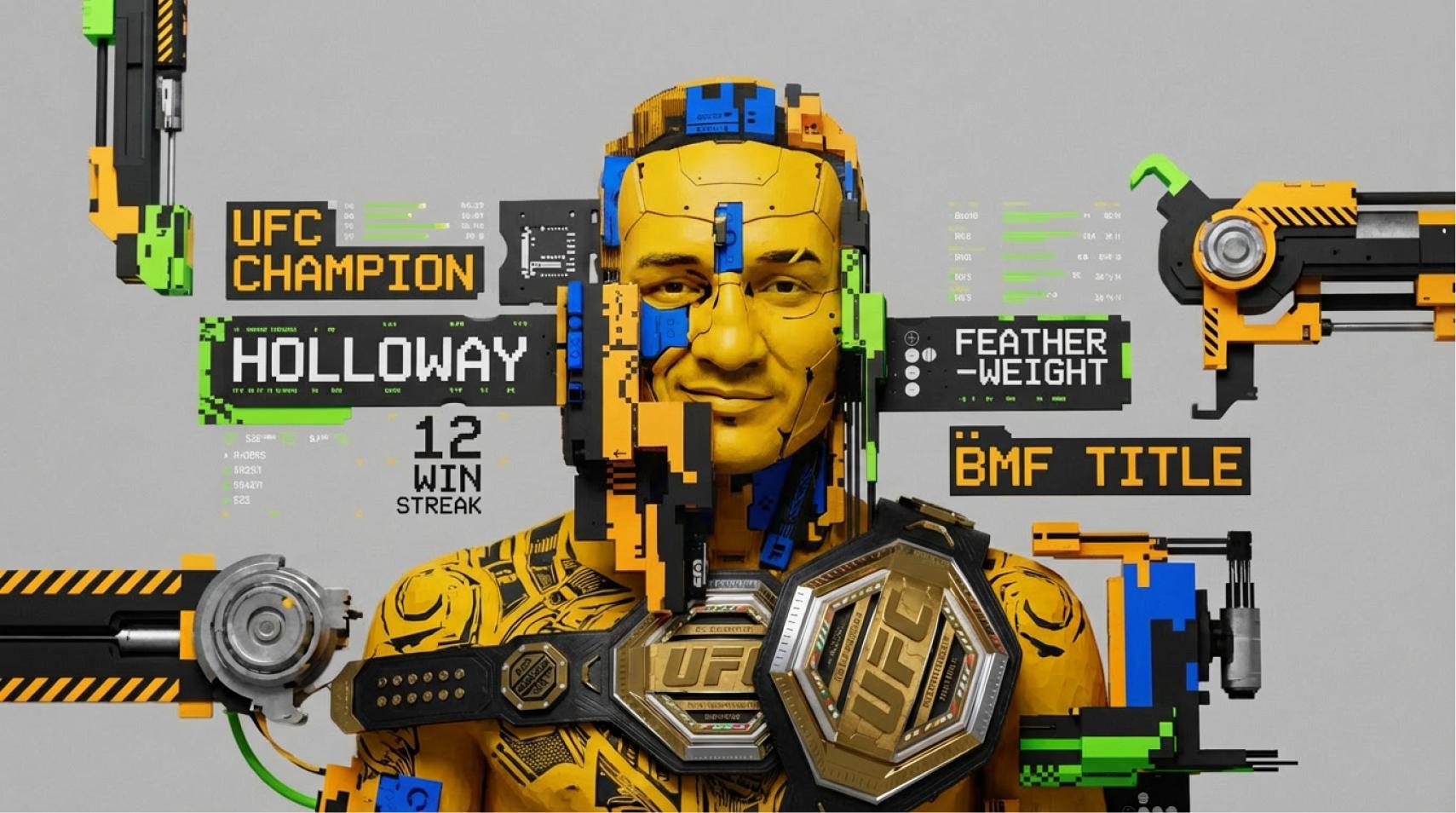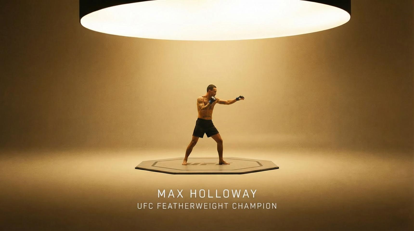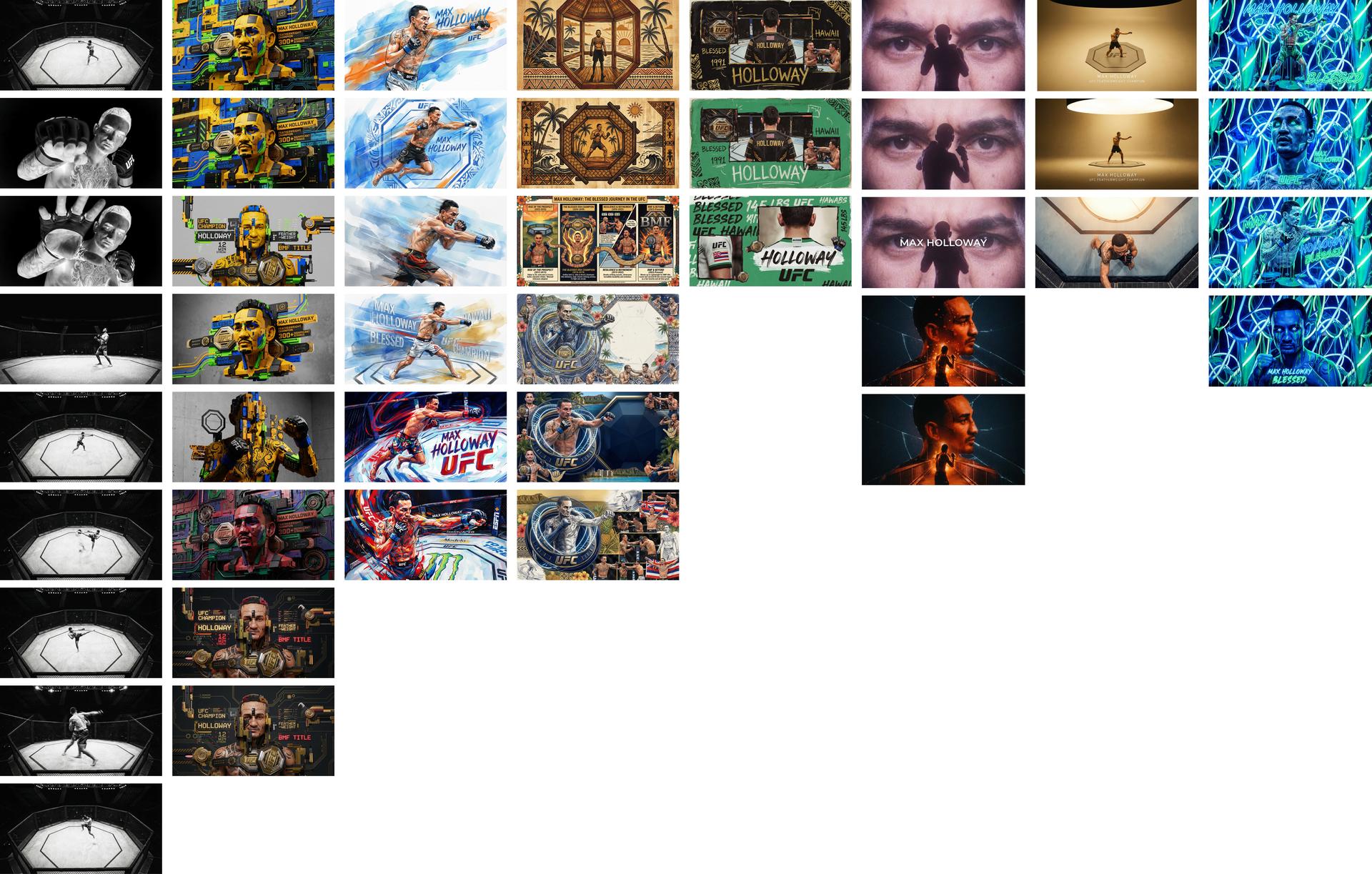 A self-initiated exploration into what world-class UFC graphics could look like using AI as a creative tool. The subject: Max "Blessed" Holloway — UFC Featherweight Champion, BMF title holder, one of the sport's most visually compelling athletes.